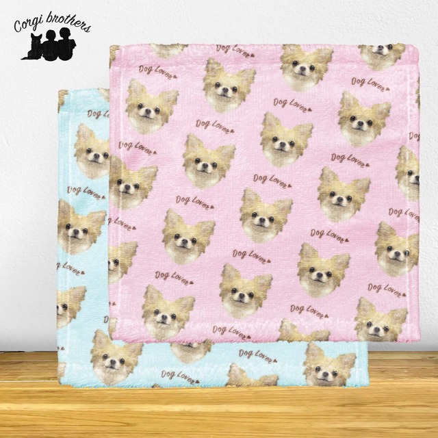 【 チワワ ロングコート 毛色6色 】 タオルハンカチ ピンク&ブルー2枚セット プレゼント 犬 うちの子 200mmx200mm