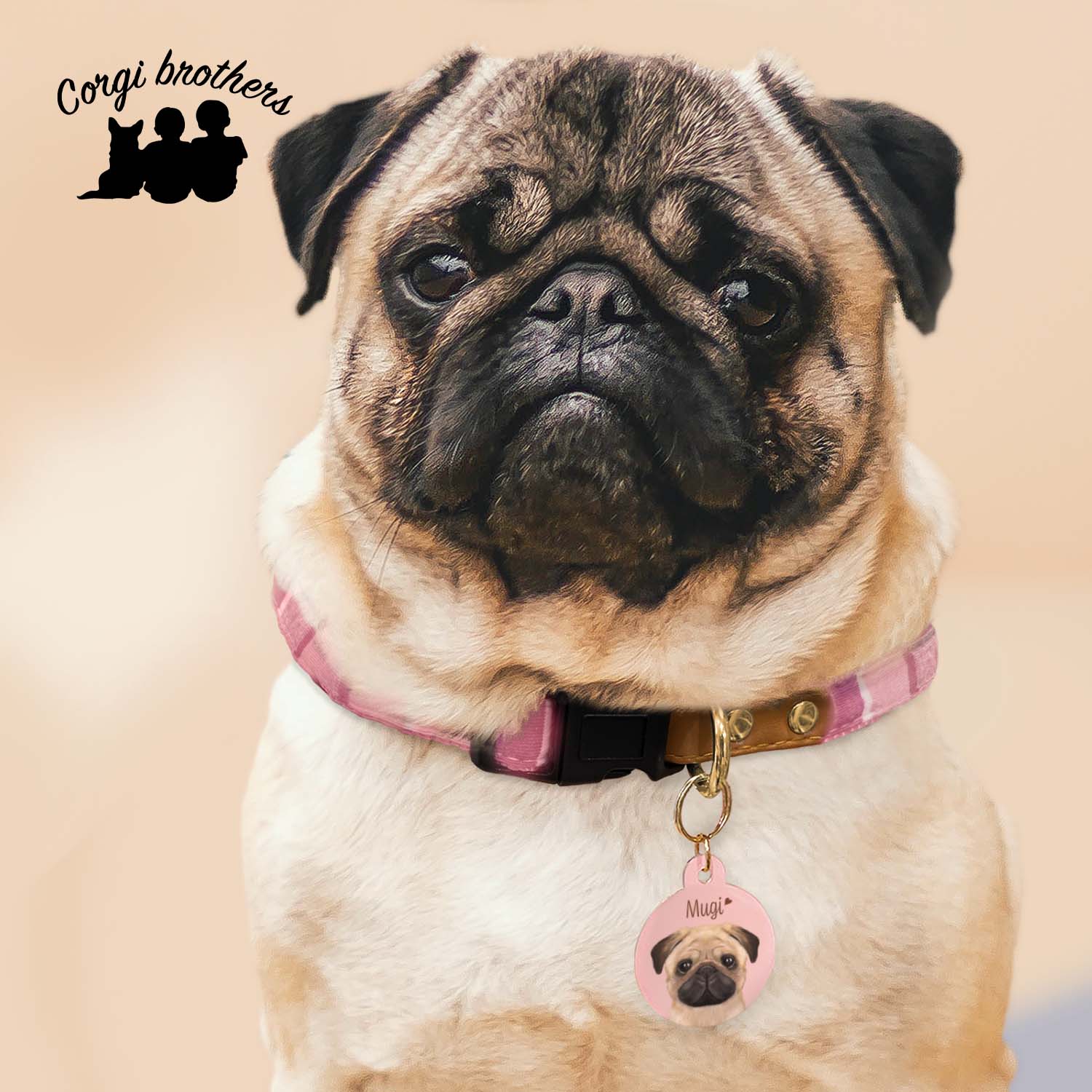 かわいいワンちゃんのイラストにパステルカラー背景の迷子札!