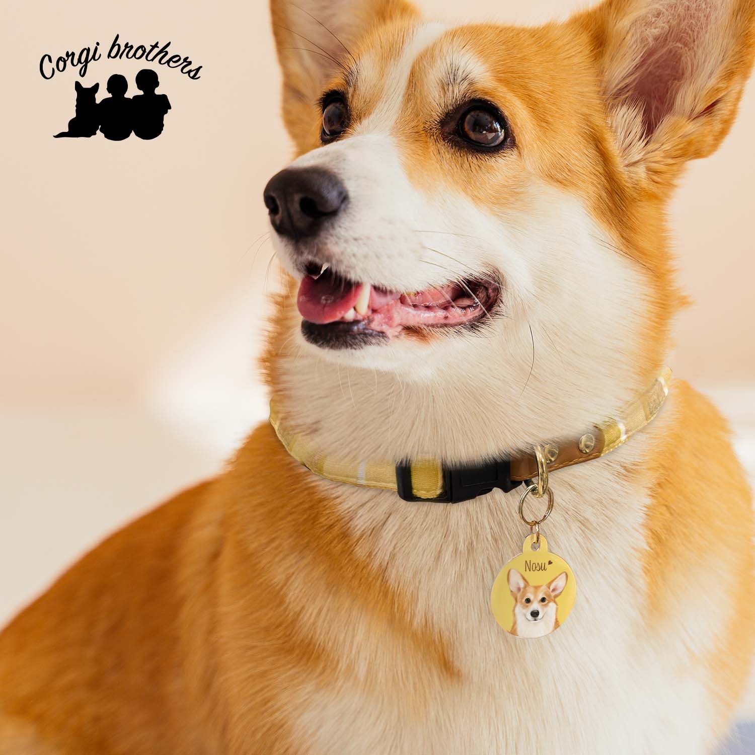 かわいいワンちゃんのイラストにパステルカラー背景の迷子札!