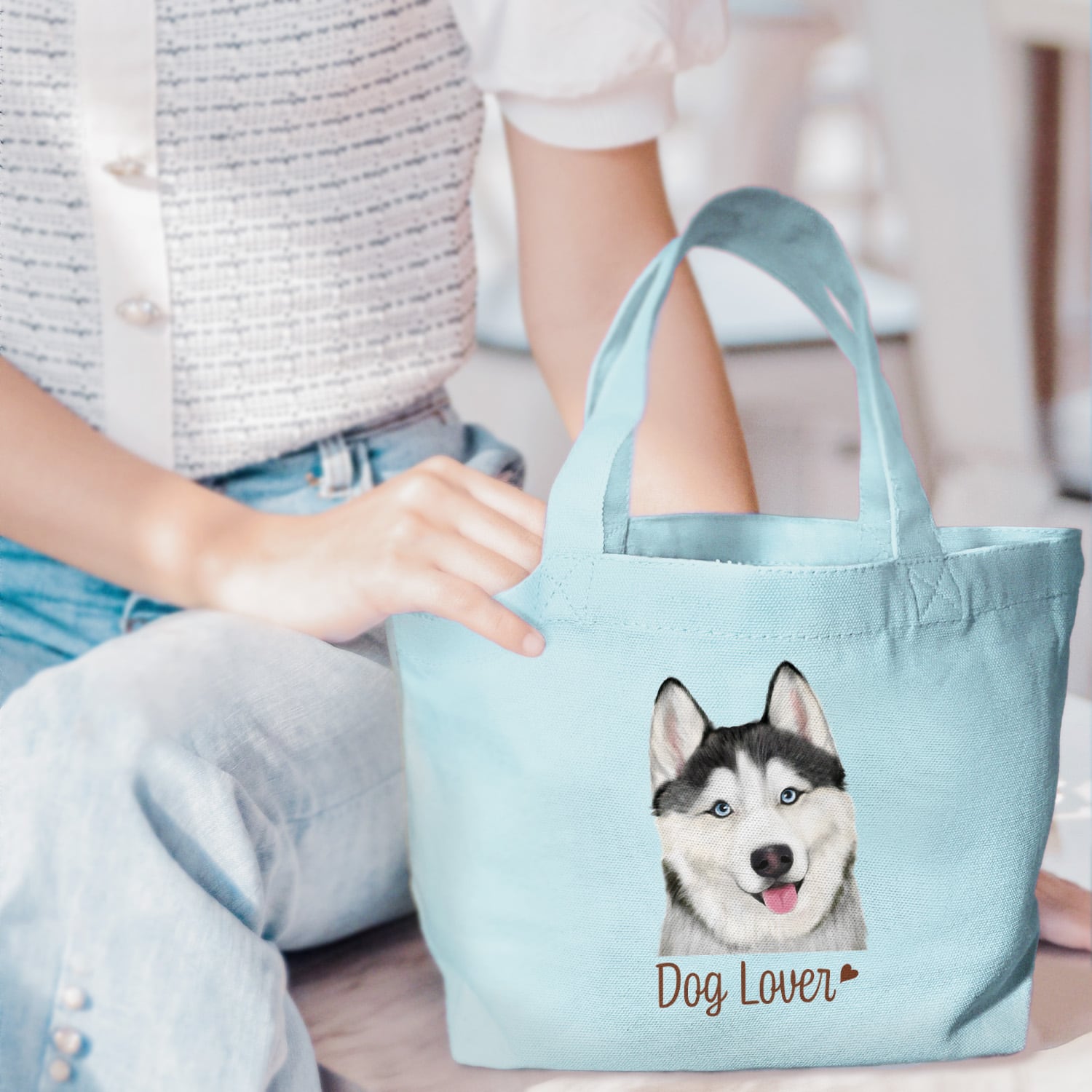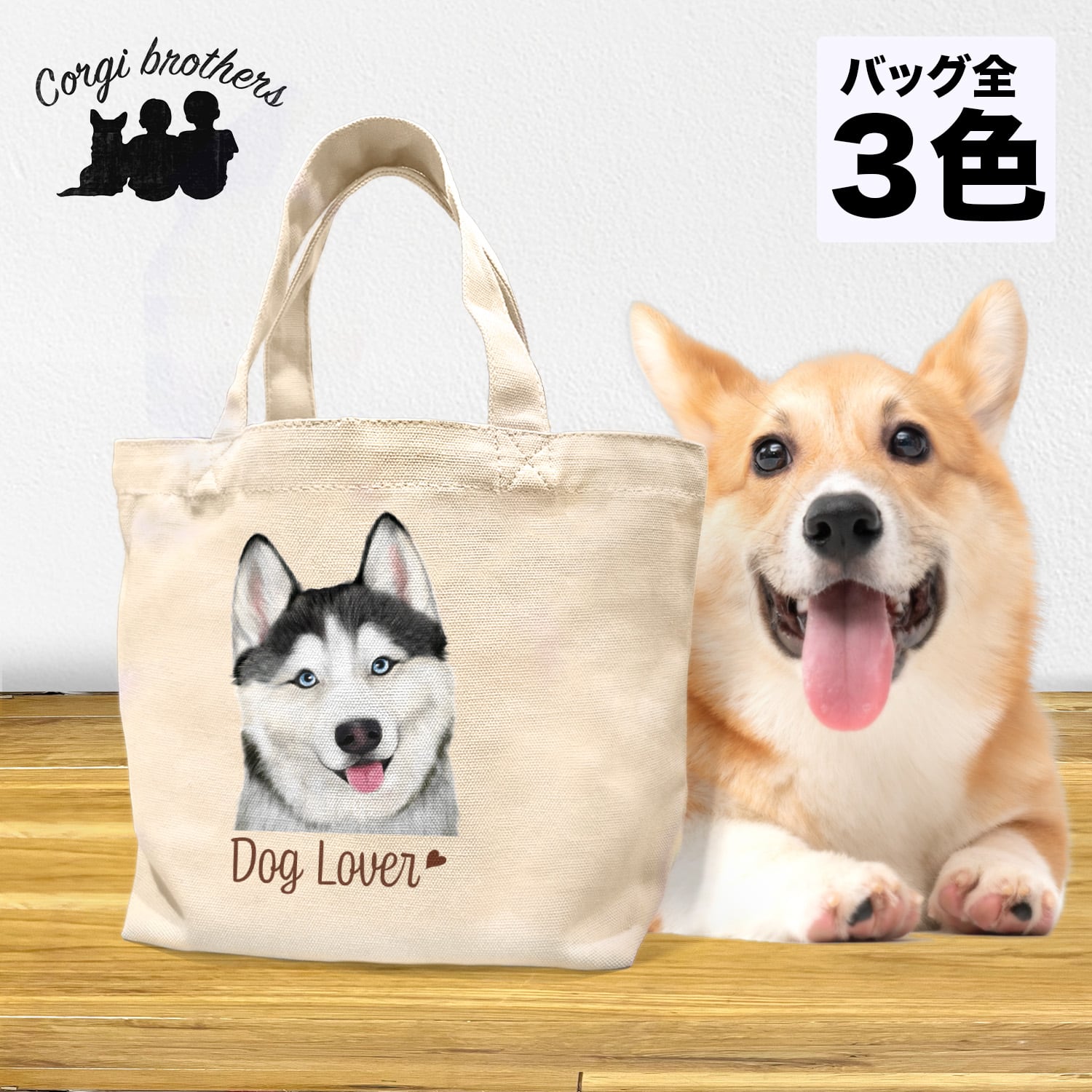 【 シベリアンハスキー 水彩画風 毛色4色 】 ミニキャンバス トートバッグ 犬 ペット うちの子 プレゼント 母の日