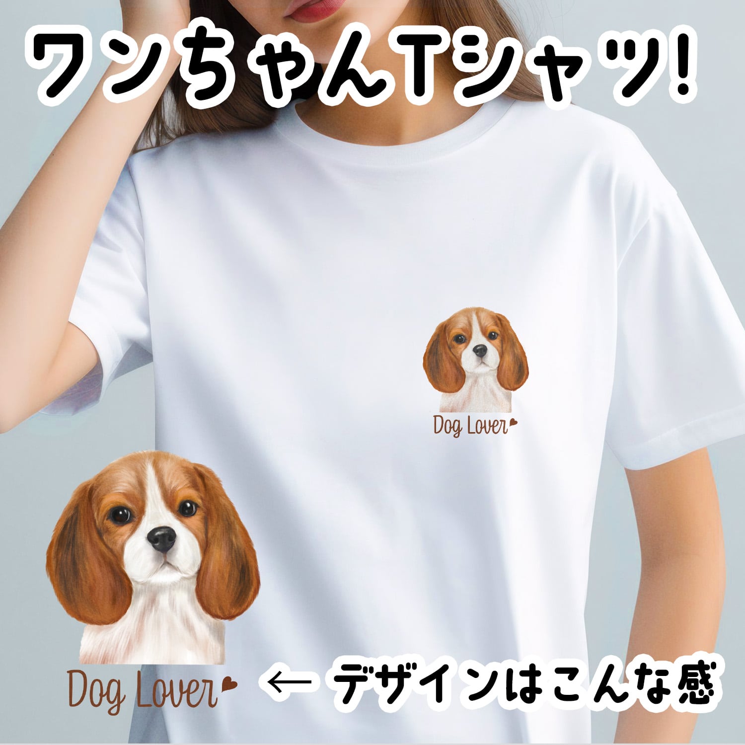 可愛いわんちゃんのイラストがプリントされたホワイトT-シャツ!