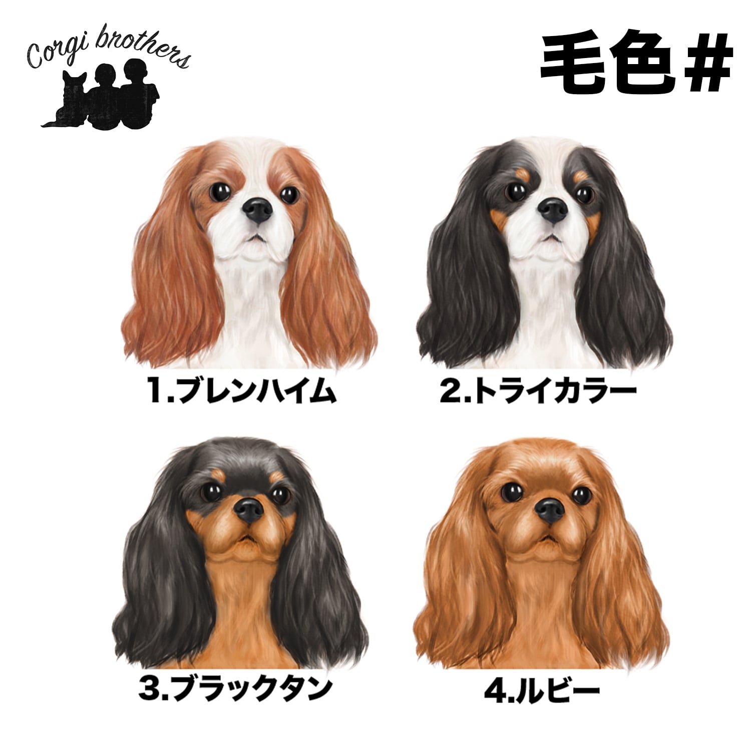 【 キャバリア 水彩画風 毛色4色 】 Tシャツ おしゃれ かわいい 犬 ペット うちの子 プレゼント ギフト
