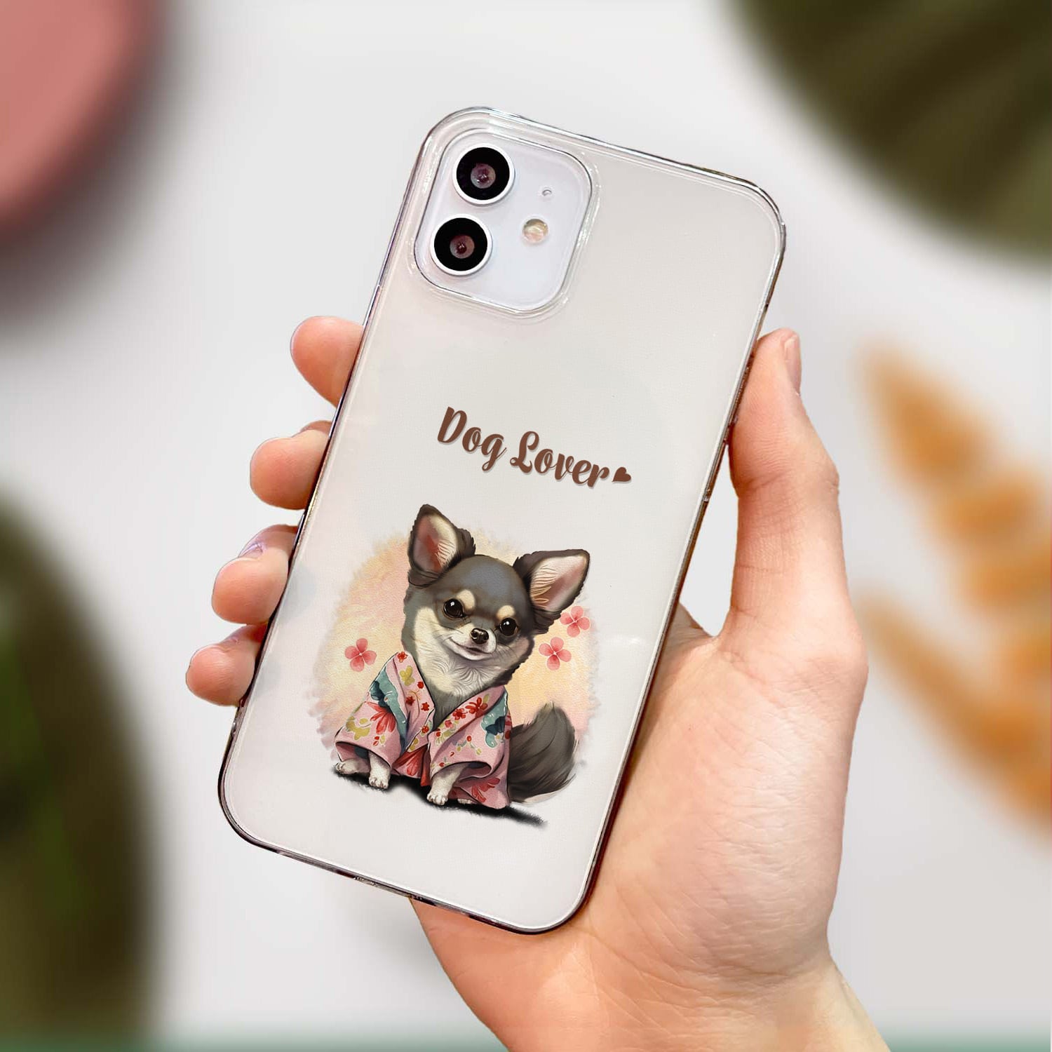 【 晴れ着姿の チワワ 】 スマホケース クリアソフトケース 犬 犬グッズ プレゼント アンドロイド対応