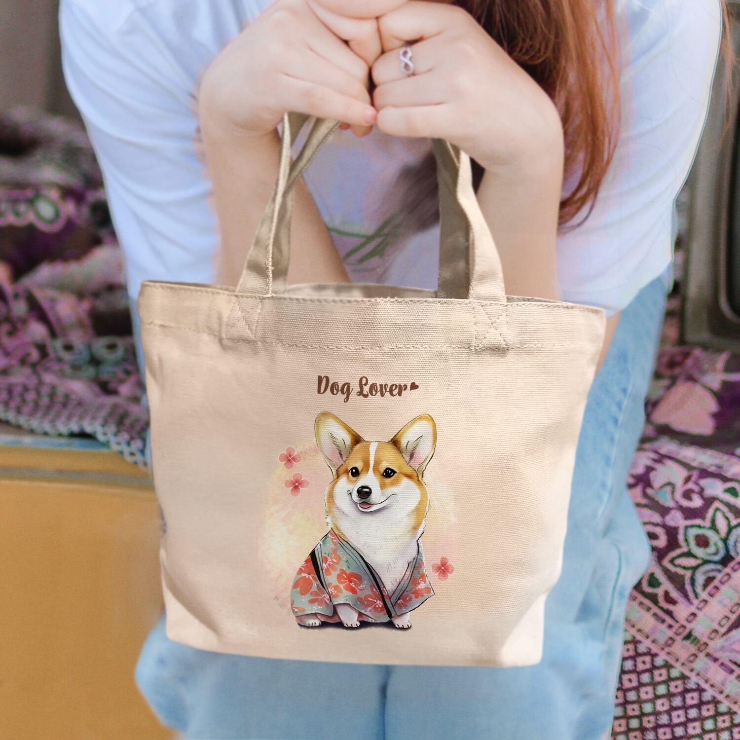 【 晴れ着姿の コーギー 】 ミニキャンバス トートバッグ 犬 ペット うちの子 プレゼント 母の日