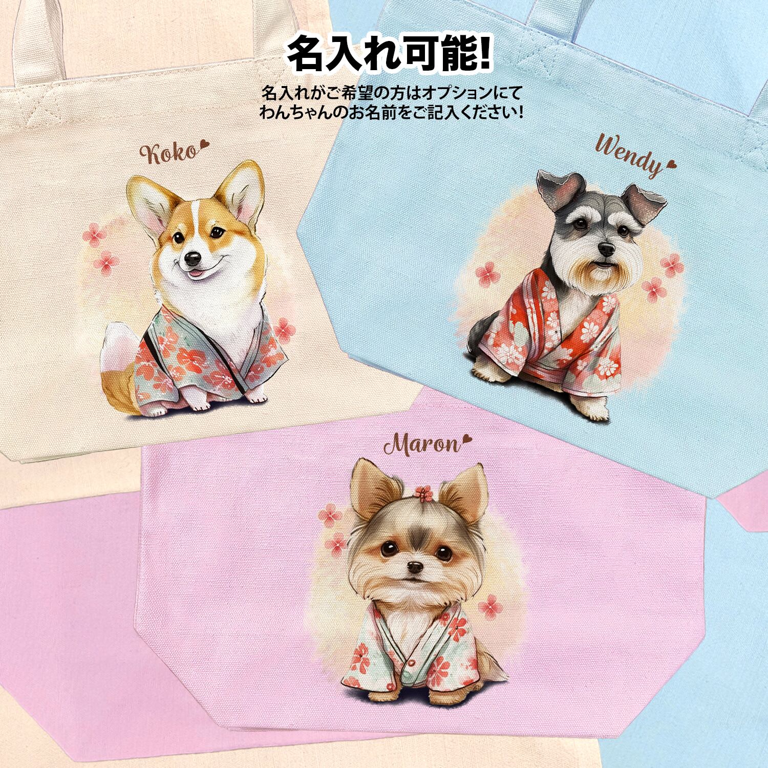 【 晴れ着姿の ドーベルマン 】 ミニキャンバス トートバッグ 犬 ペット うちの子 プレゼント 母の日